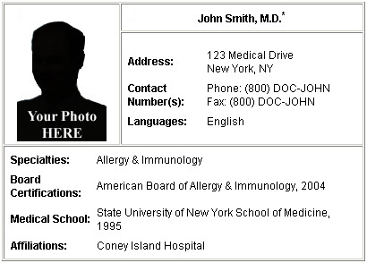 | *NOT an actual physician listing! |