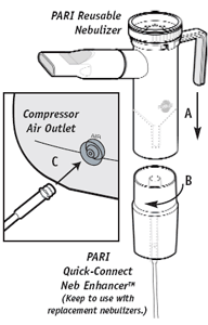 - To detach the PARI Reusable Nebulizer from the Quick-Connect Neb Enhancer, gently twist the nebulizer 1/4 turn while pulling apart. Clean the PARI Reusable Nebulizer as directed.